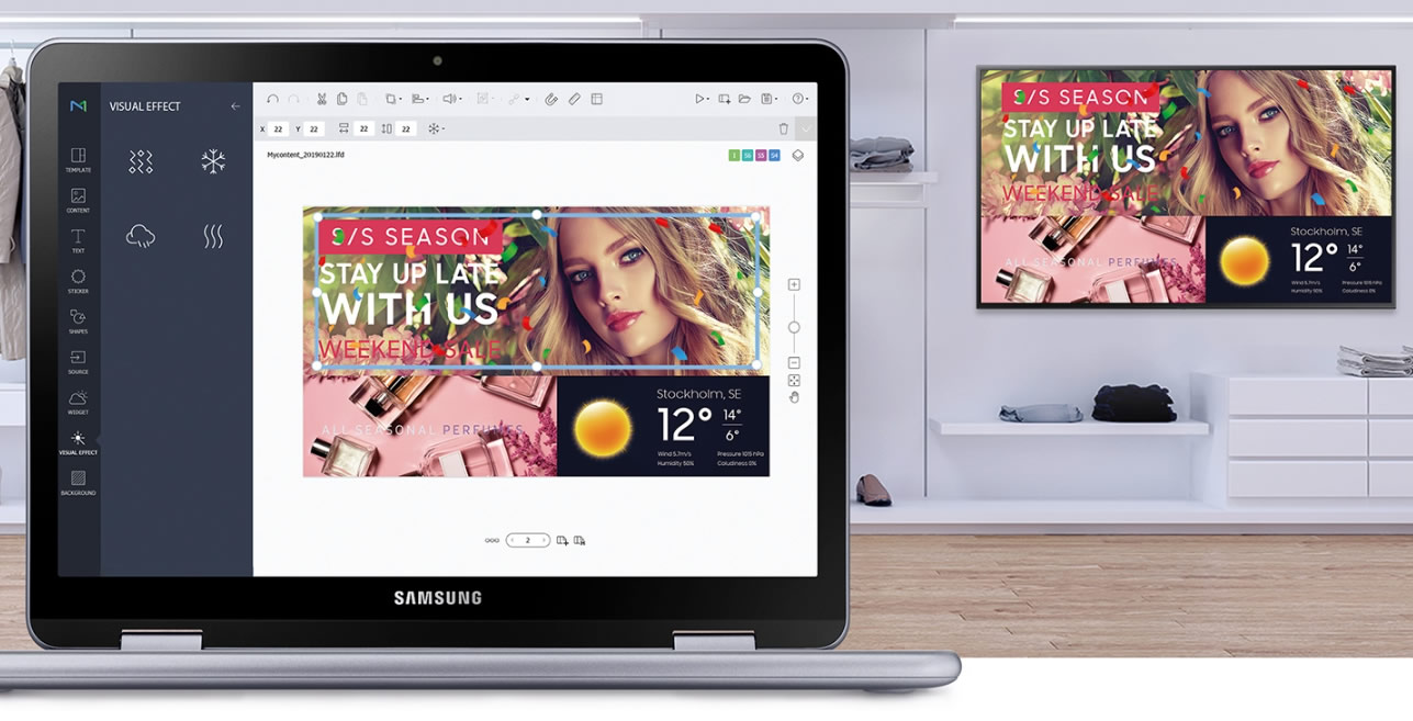 Caricando i dati delle vendite sulla piattaforma, MagicINFO è in grado di confrontare i contenuti riprodotti con gli articoli effettivamente venduti, determinando eventuali corrispondenze e valutando l'efficacia della comunicazione.
